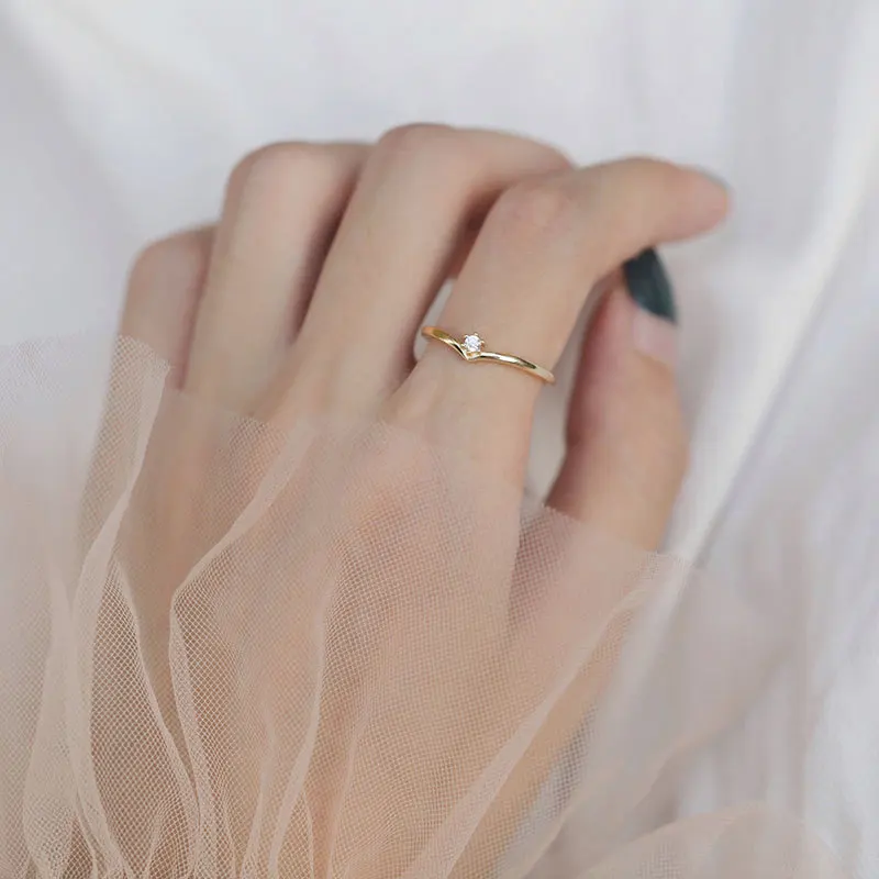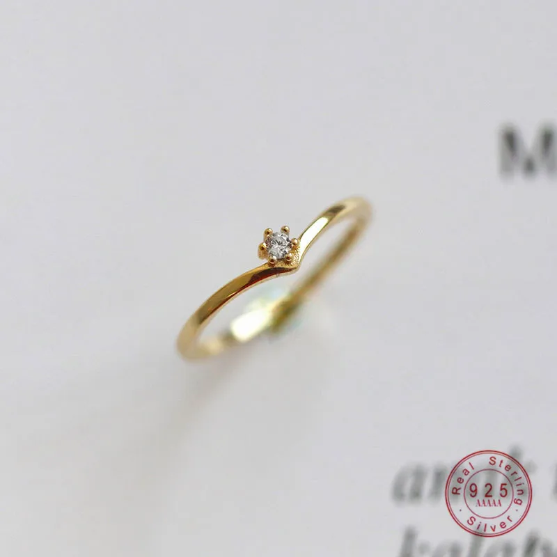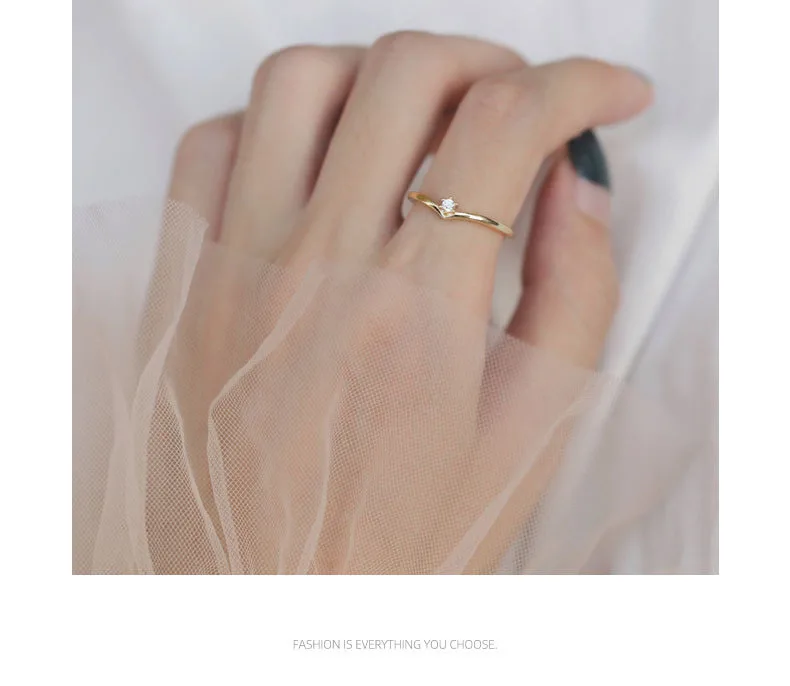 HI-MAN 925 стерлингового серебра корейская мода V-образный один циркониевое кольцо для женщин Роскошные темперамент юбилей, подарок, ювелирное изделие