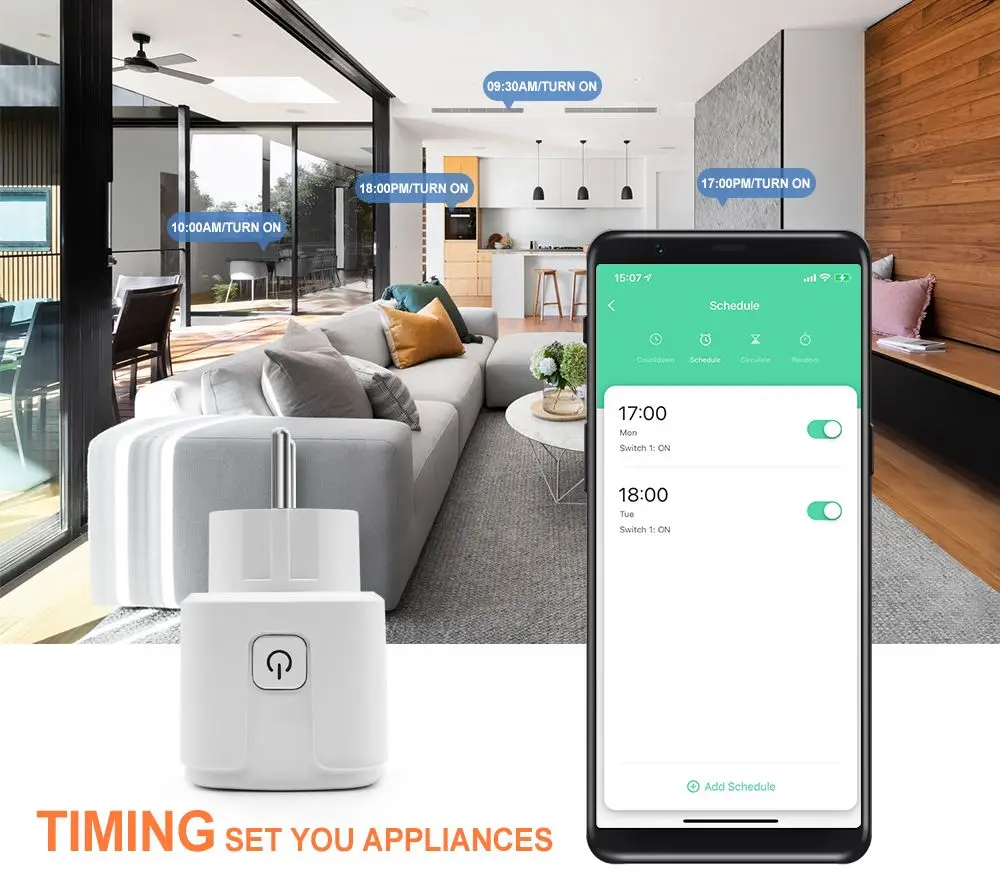 Общая номинальная мощность этого смарт-разъема WiFi составляет 3000 Вт, пожалуйста, не используйте несколько мощных устройств ed (всего менее 3000 Вт) в то же времяСтильно разработанный для работы с Amazon Alexa для голосового управления ECHO, вы можете легко управлять розеткой прямо с вашего смартфона.Также работает с Google Home для голосового управления Google Assistant, что делает вашу жизнь проще одним щелчком на вашем смартфонеБольше не забывайте о включении/выключении домашней техники, такой как вентилятор, увлажнитель воздуха, диспенсер для воды, освещение, микроволновая печь и т. д., благодаря настройке времени и функции Обратного Отсчета УстройстваПолучите уютное утро, просто установив таймер для рисоварки или соковыжималки, что является низким энергопотреблением для экономии электроэнергии. Все готово, когда вы просыпаетесь.Экономьте время перед сном. Уменьшение повседневную жизнь обычные путем дистанционного обработки с различные виды веревка светильник электрические гаджеты по всей поверхности вашу комнату, нет подключение и хлопот.