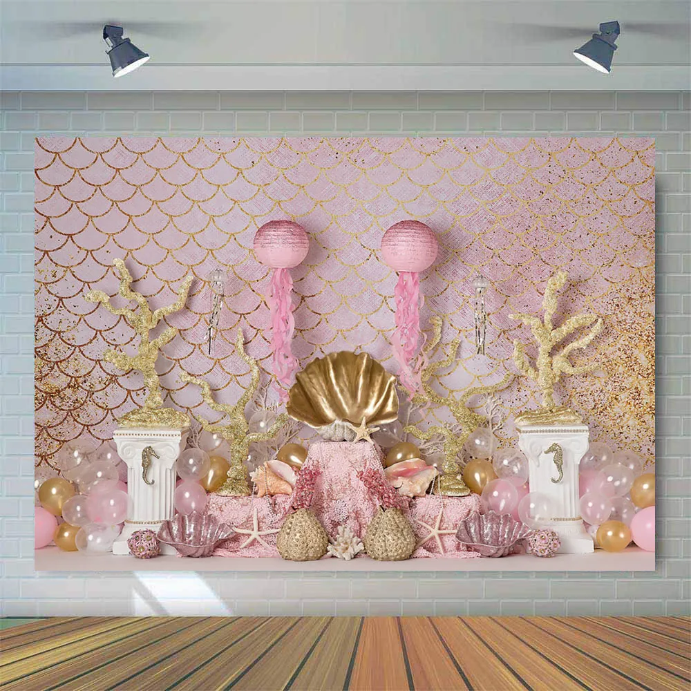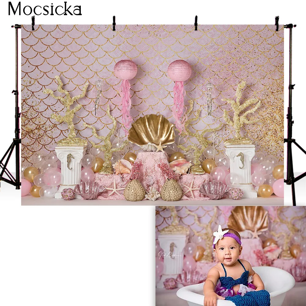Фон для фотосъемки с морской розовой русалочкой на день рождения маленькая Русалочка Принцесса на 1-й день рождения торт разбивать новорожденный портрет