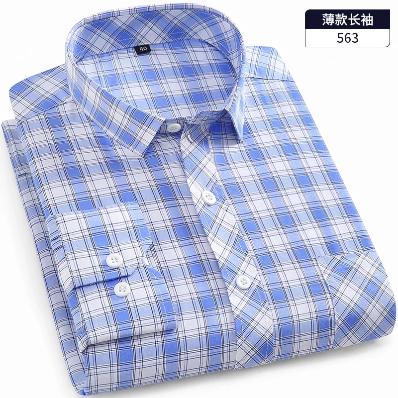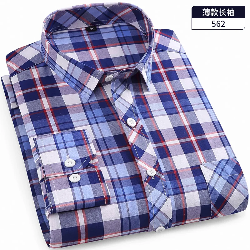 Новинка 2021, мужская рубашка из хлопка и полиэстера, повседневная одежда с длинным рукавом, в клетку, весна-осень, с отложным воротником, модная, DA456