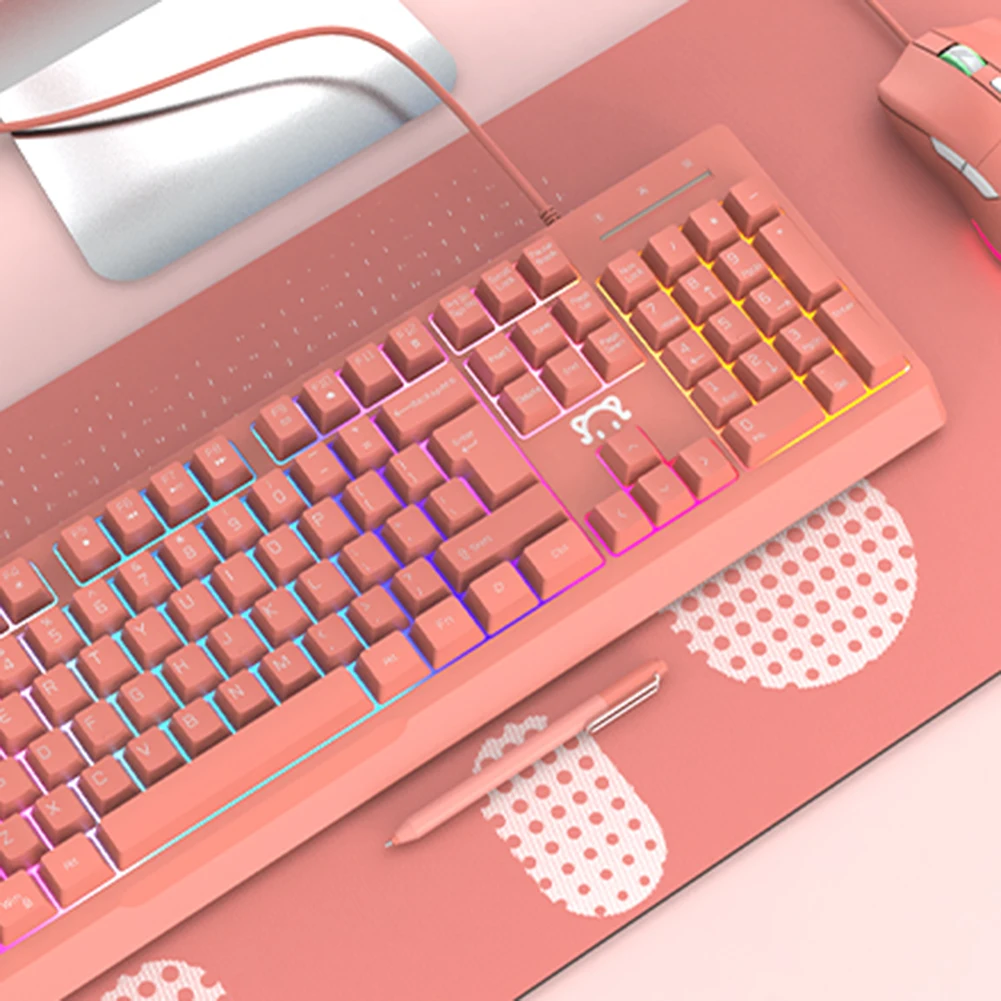 Розовый Механическая игровая клавиатура 104 ключей USB Проводная ге...