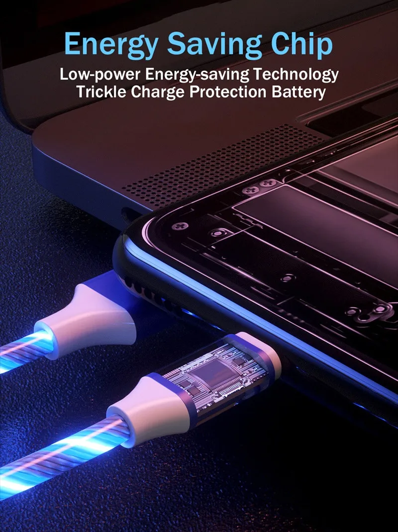 Яркий светящийся кабель мобильный телефон кабель для зарядки LED Mi...