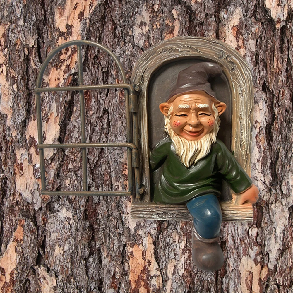 Садовая статуя гнома эльф из смолы в дверь дерево Hugger для украше...