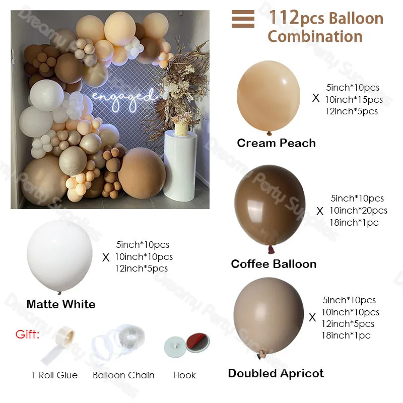 112 шт коричневые шары арочный комплект кремовый цвет персиковый, телесный, латексные воздушные шары гирлянда Обручение Юбилей Baby Shower вечерние Декор поставки