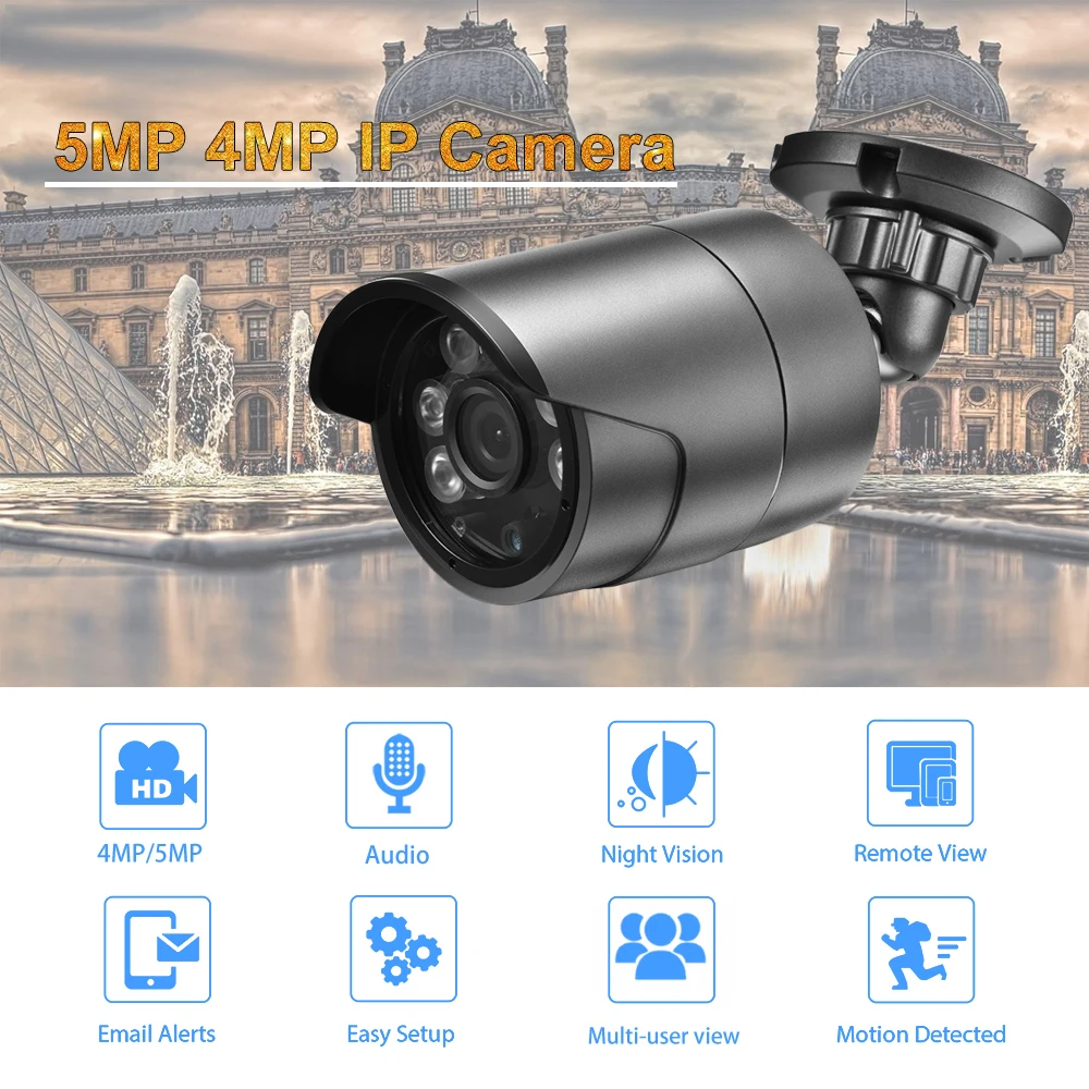 IP-камера AZISHN 5 МП, H.265 +, наружная, водонепроницаемая, IP66, аудио, 6 светодиодов, распознавание лица, 48 В, POE AZ63B615-5MP
