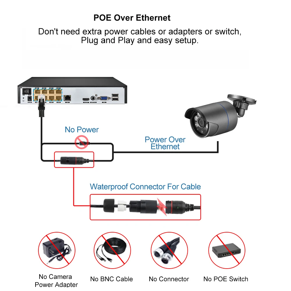 48V объединения модулей POE Камера: 802.3af Стандартный объединения модулей PoE встроенный, он может работать с 48V PoE инжектор или 48V POE NVR, стандарт 802.3af, если у вас нет 48 в PoE инжектора или 48 в POE NVR, вы можете использовать 12 В 1A/2A адаптер питания (не входит в комплект) работает с камерой POE.