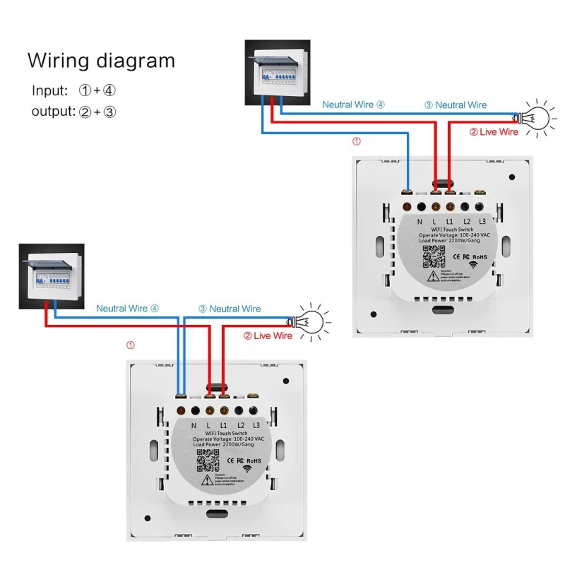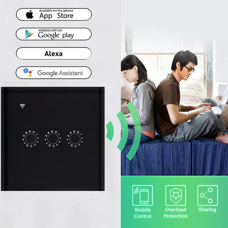Интеллигентая (ый) Wi-Fi Сенсорный настенный выключатель: This1 / 2 / 3The Gang сенсорный выключатель поддерживает максимум мощность 2200 Вт, которая может работать с большинства ламп и других электрических приборов. Он может управлять 3 устройствами одновременно. Размер: 3,4 (Д) * 3,4 (Ш) * 1,4 (в) дюймов, напряжение переменного тока 90-250 В.