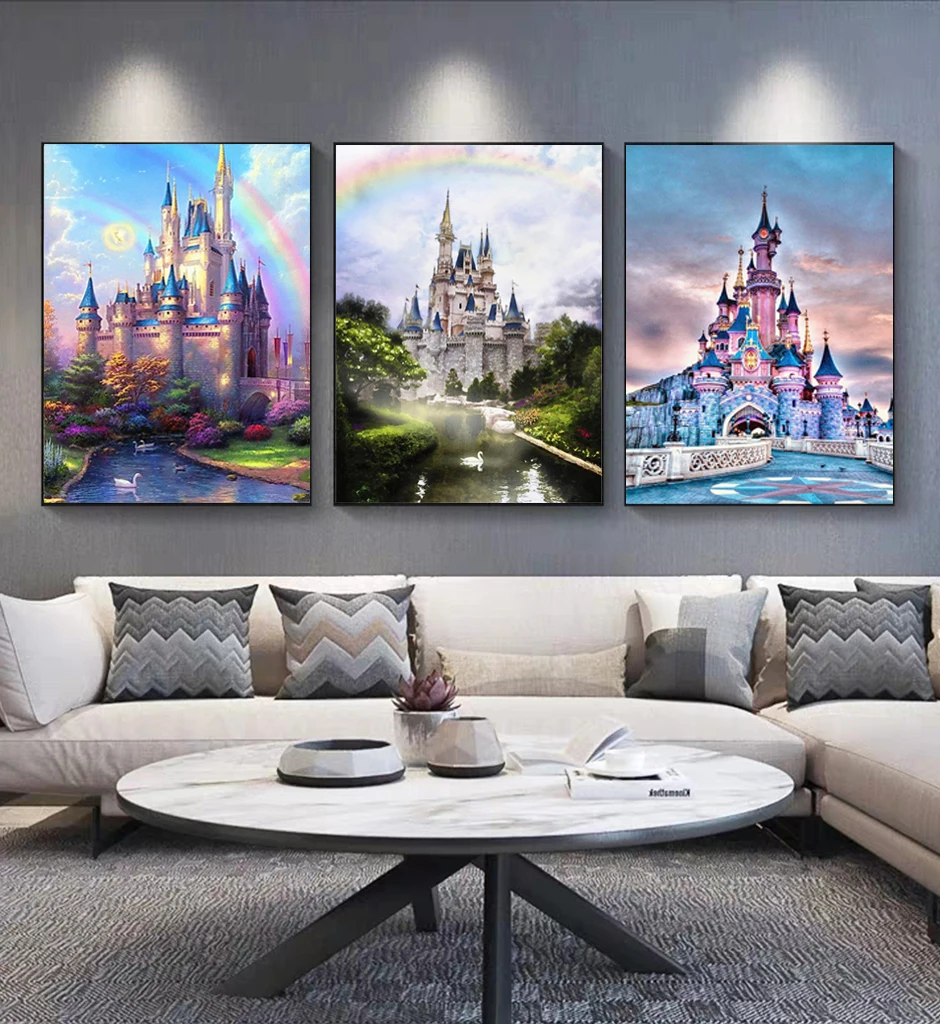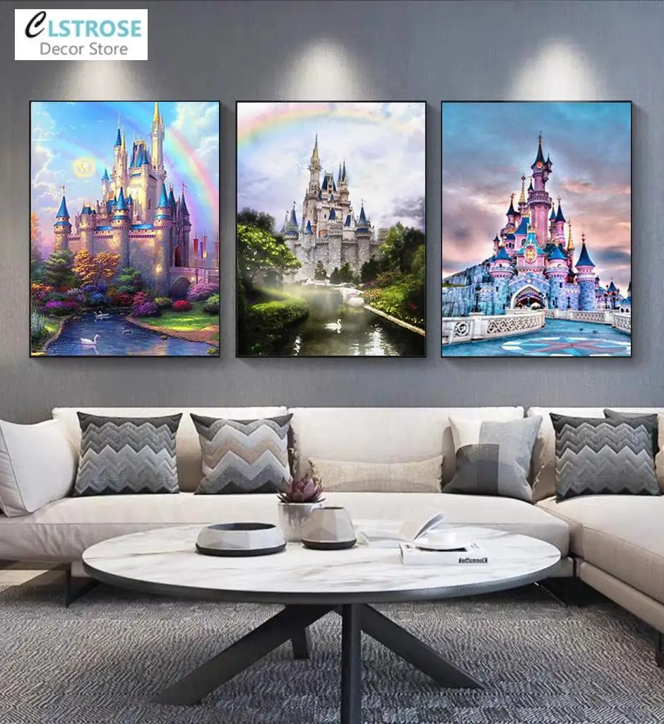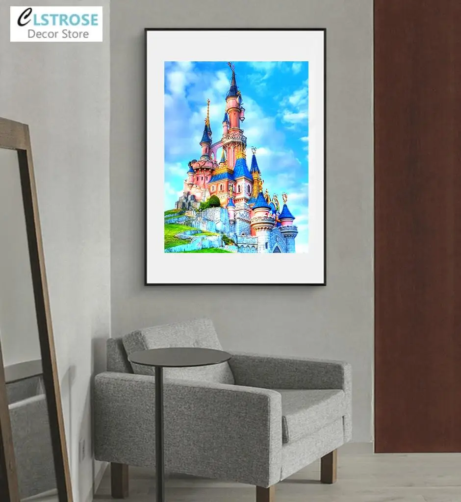 5D алмазная живопись сделай сам, замок, пейзаж, квадрат, круглая Алмазная вышивка, мозаика, акриловый Набор для вышивки крестиком, художественное оформление для дома