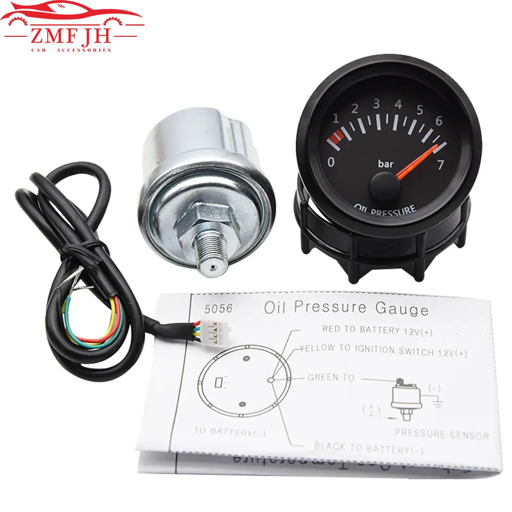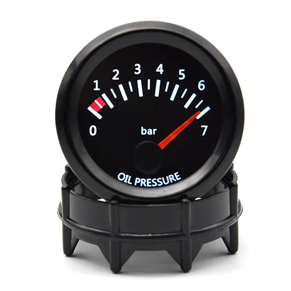Универсальный автоматический манометр для давления масла, 2 дюйма, 52 мм, 12 В, автомобильный манометр давления масла 0-7 бар, светодиодный измеритель с датчиком для гоночного манометра 12 В, черный держатель