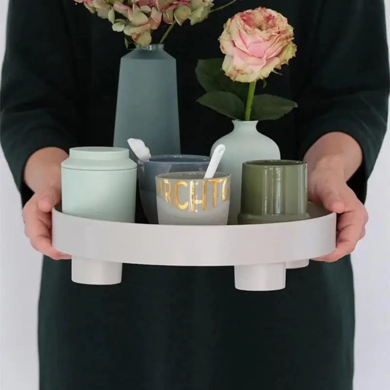 Круглый пластиковый поднос для хранения в скандинавском стиле, посу...