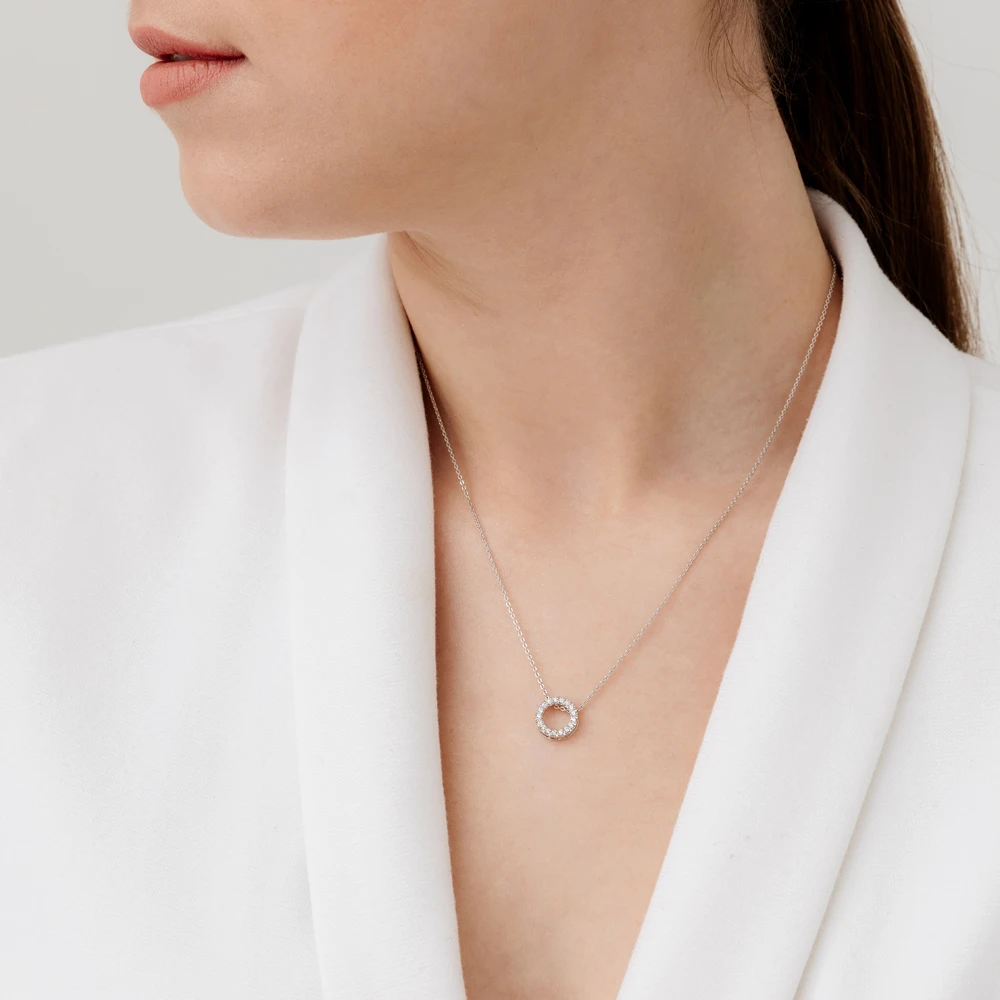 Колье из серебра с фианитовой обсыпкой. Высота изделия: 10,2 мм. Ширина изделия: 10,2 мм