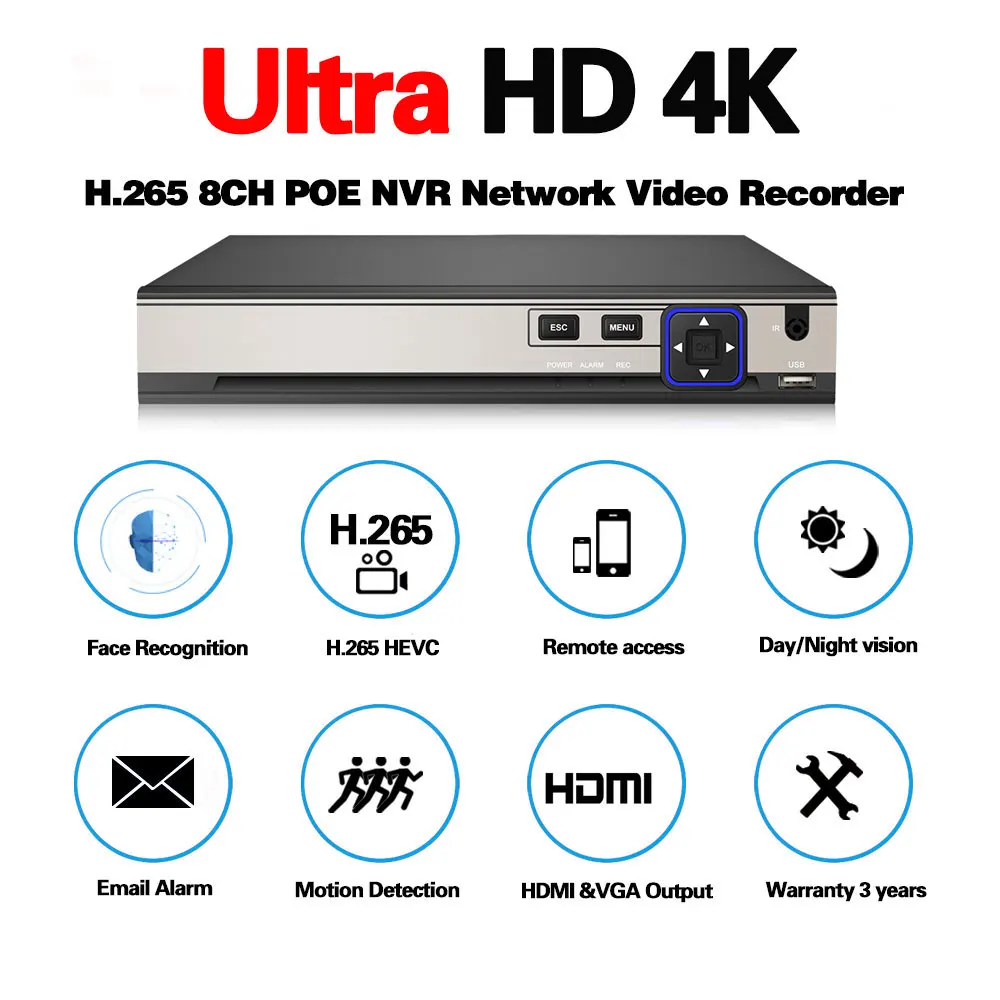 NНовое обновление записи лица и воспроизведения 8Ch NVR Full HD 8.0MP P2P автономный CCTV NVR ONVIF для IP камеры системы безопасности
