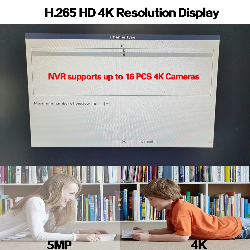 NVR поддерживает камеры до 16 4K. Вы можете использовать коммутатор POE для подключения к NVR и поддерживать до 16 камер 4K.