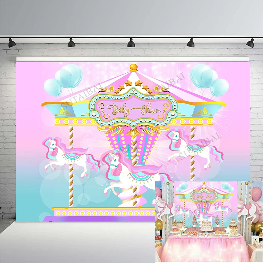 Виниловый фон для фотосъемки с изображением единорога карусели принцессы девочки на день рождения