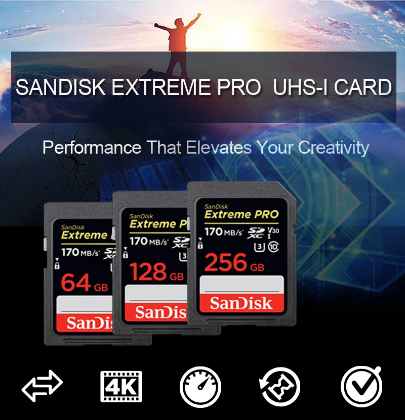 Создан и протестирован в жестких условиях S3, SanDisk Extreme PRO®SD™UHS-I карта защищена от температуры, водонепроницаема, Ударопрочная и рентгеновская.