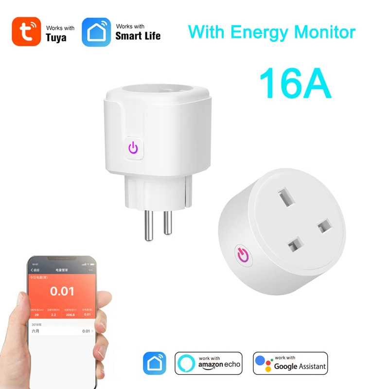 Умная розетка Wi-Fi для бытовой техники, 16 А, Великобритания, США, контроль энергопотребления, Tuya Smart life, Голосовое управление Alexa