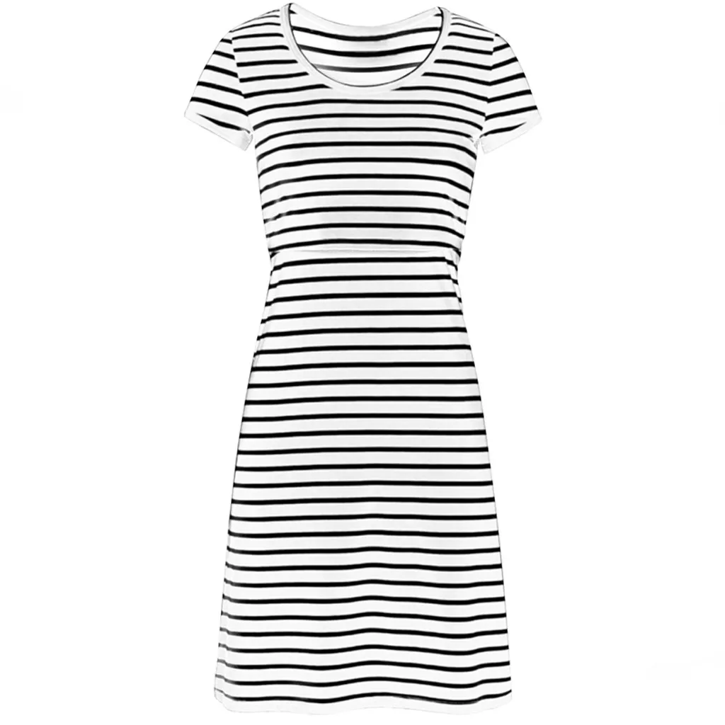 Полосатое платье для кормящих женщин Летнее Длинное Платье с круглым вырезом и коротким рукавом для беременных Одежда для кормления грудью Vestido