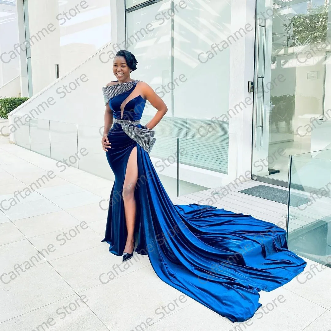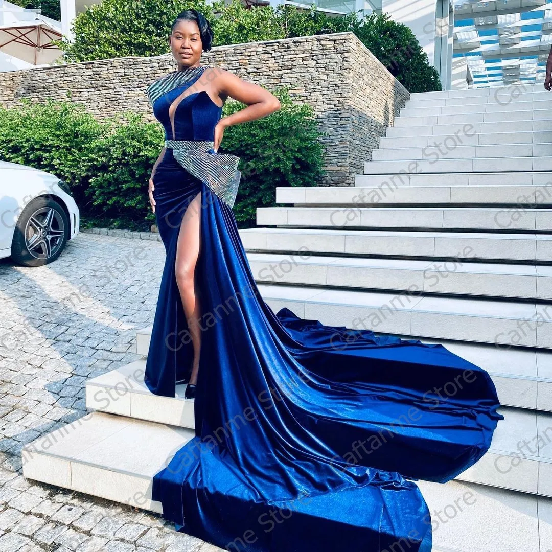 Сексуальное вельветовое длинное вечернее платье со шлейфом Aso Ebi,...