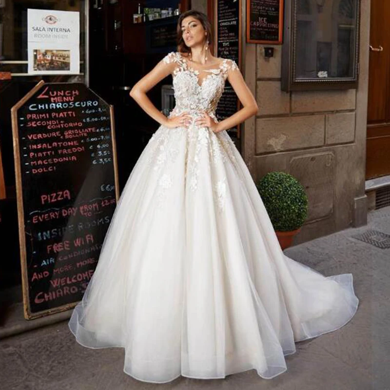 Свадебное платье принцессы LORIE, кружевное платье-трапеция с аппли...