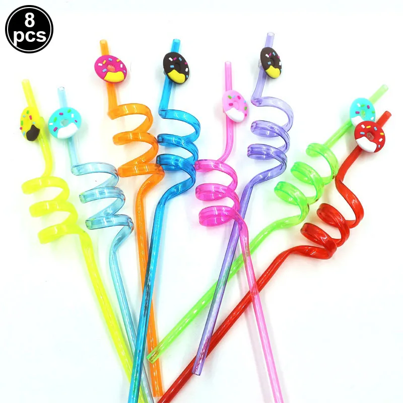 8 шт 25 см Многоразовые пончики соломки для дней рождения пончик для выращивания тема пластиковая Питьевая Солома для детей Товары для дня рождения