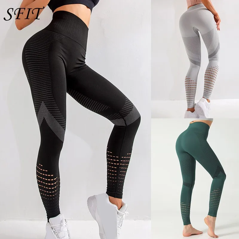 Женские леггинсы для фитнеса SFIT с высокой талией, пикантные бесшовные леггинсы с вырезами, тренировочные штаны с принтом, облегающие эластичные штаны пуш-ап