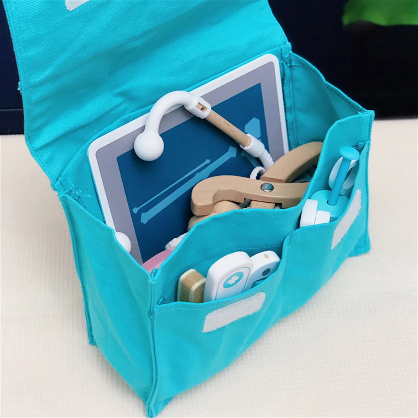 Игрушечный Набор доктора для детей, набор для игр для девочек и мальчиков, имитация дерева, красный медицинский стоматологический медицинский набор, тканевая сумка