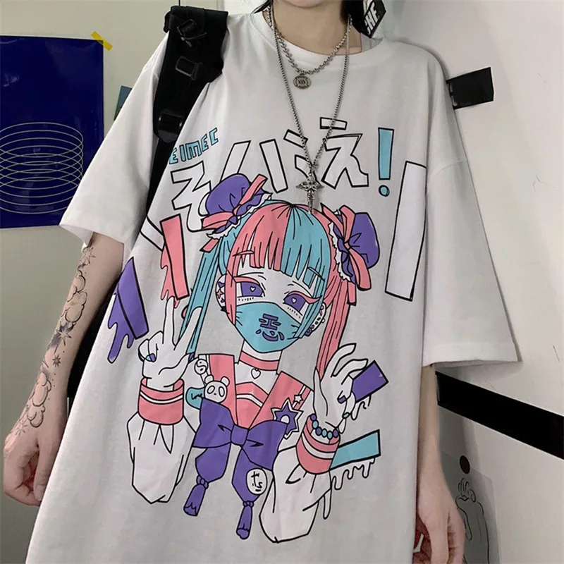 Женская футболка в стиле Харадзюку, свободная Готическая футболка в...