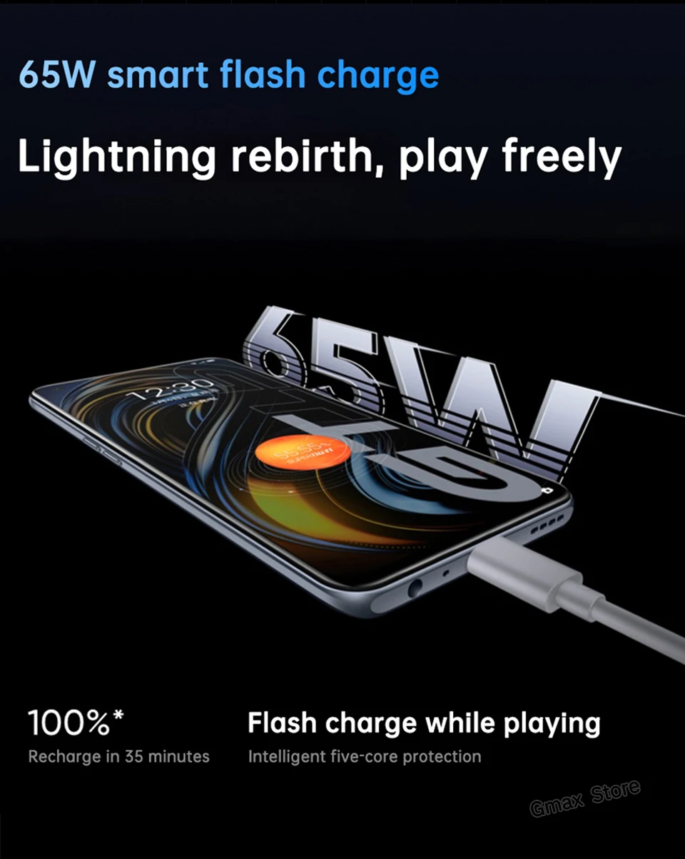 Realme GT использует умную флэш-зарядку мощностью 65 Вт (макс.) с коэффициентом конверсии до 99%, обеспечивая максимальный уровень зарядки. Зарядка занимает всего 3 минуты, то есть она может продолжать чернеть в течение 51 минуты, а играть можно, не дожидаясь; Интеллектуальная пятиядерная система защиты блаженна, И его безопасно заряжать во время игры во время мигания.