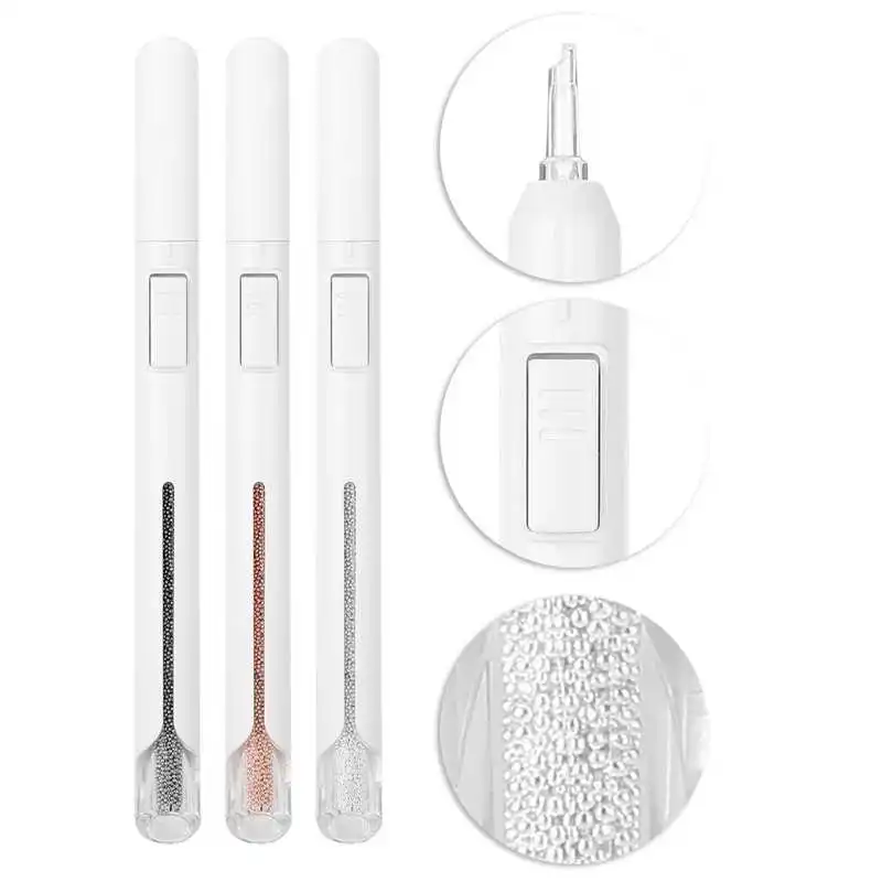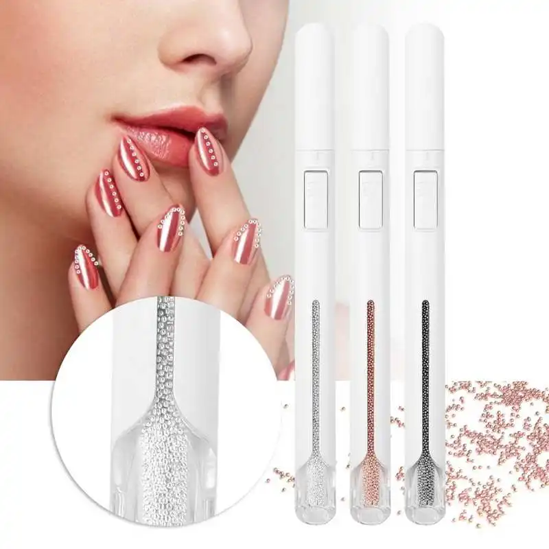 3. Простота в эксплуатации, просто нажмите кнопку, и металлические бусины выйдут для украшения ногтей.