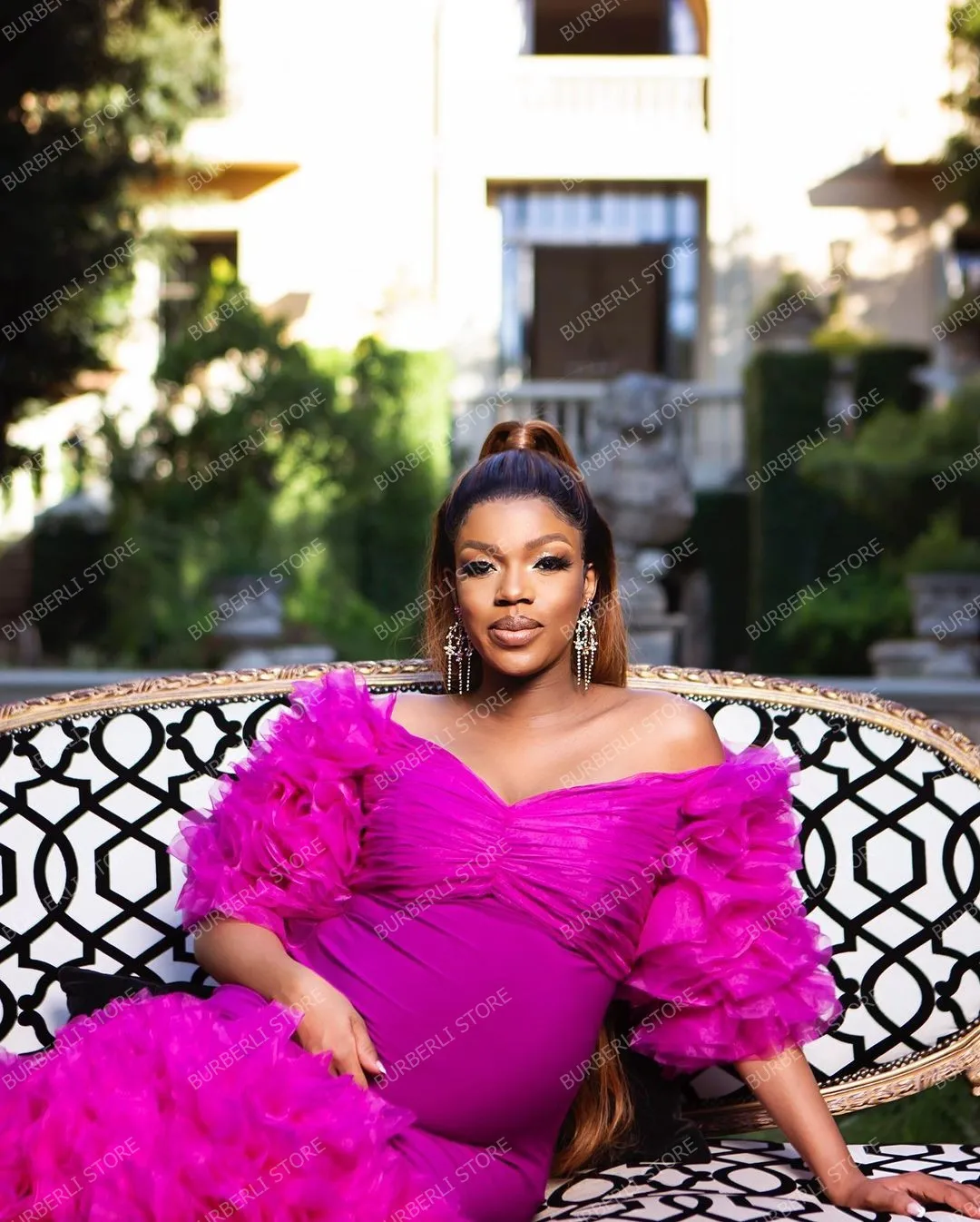 Пышное Тюлевое платье для беременных с юбкой-годе, роскошное Сетчатое платье с открытыми плечами и оборками для фотосъемки, платье для будущей мамы