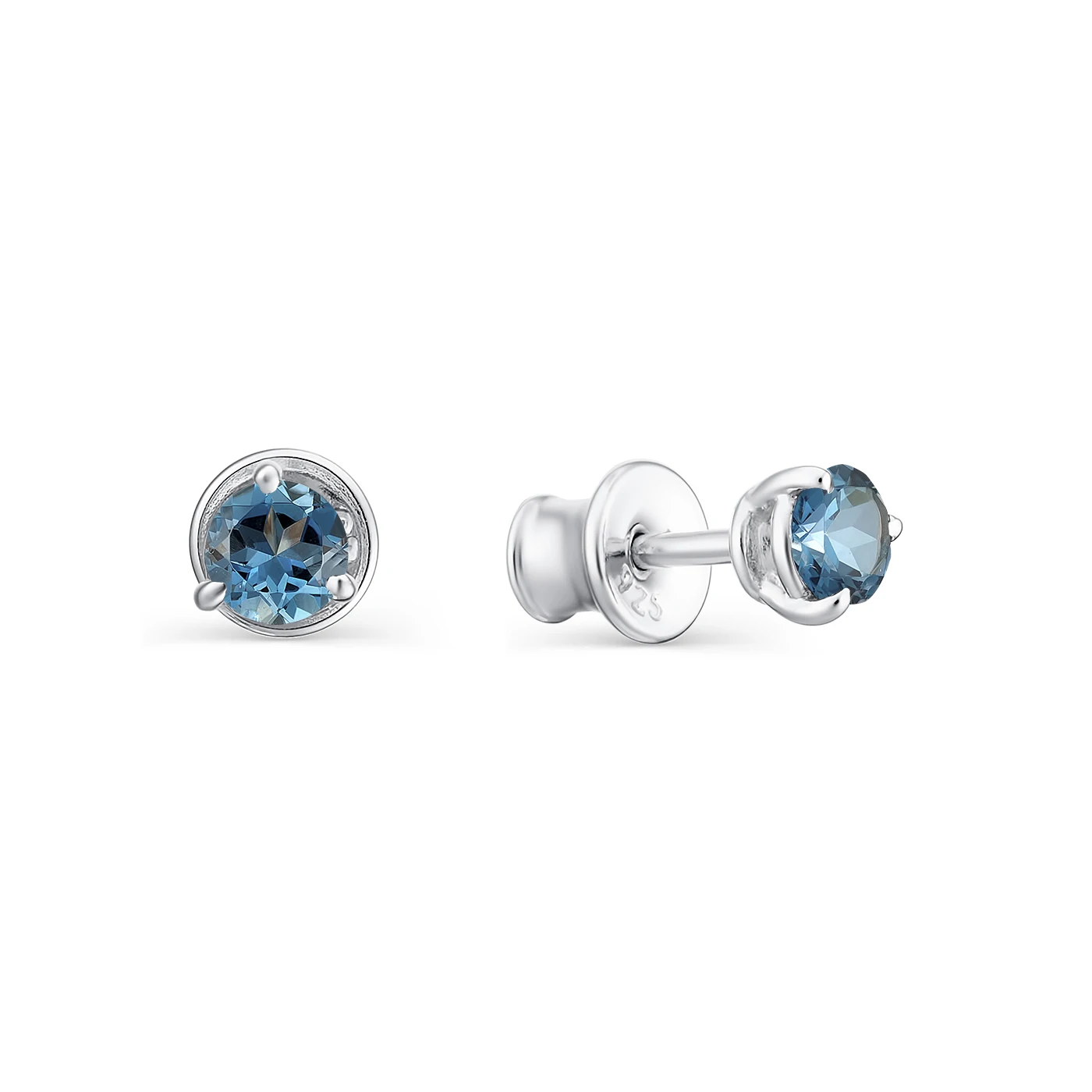Серьги-пусеты из серебра. Вставка: наноситал топаз лондон. Высота изделия: 4,6 мм. Ширина изделия: 4,6 мм