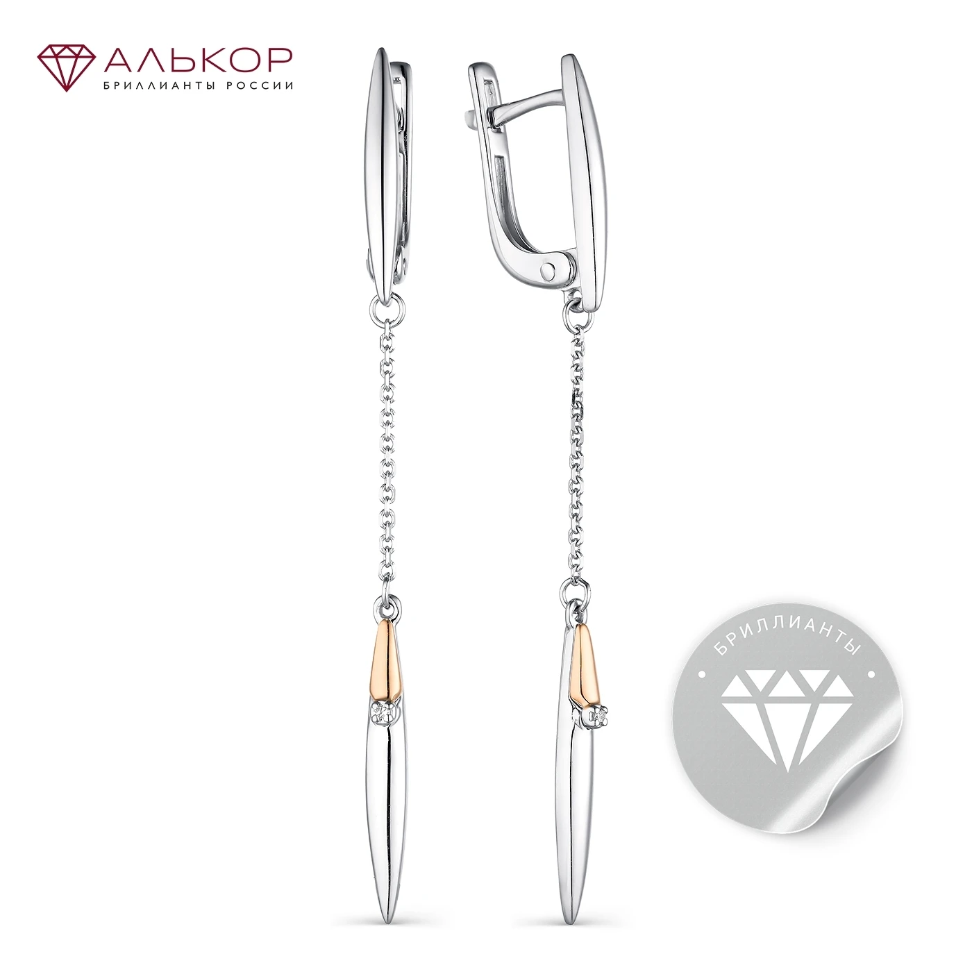 Серьги 2021 тренд из серебра 925 с покрытием из родия, природный бриллиант. Бесплатная доставка с ювелирной фабрики в России.
