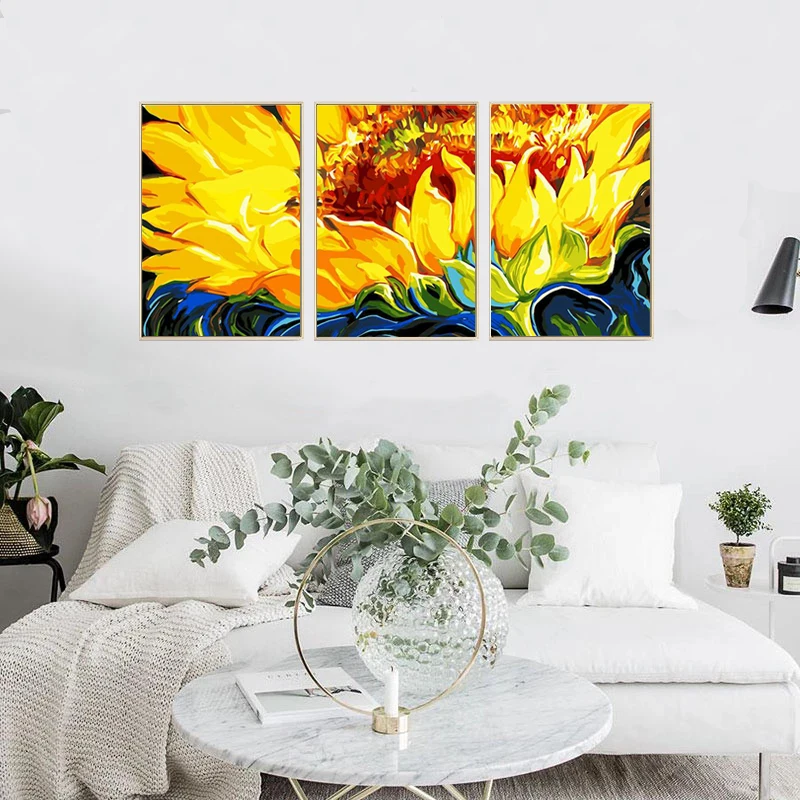 Набор для рисования по номерам на холсте Подсолнухи, 40 х50 см, 3 шт.