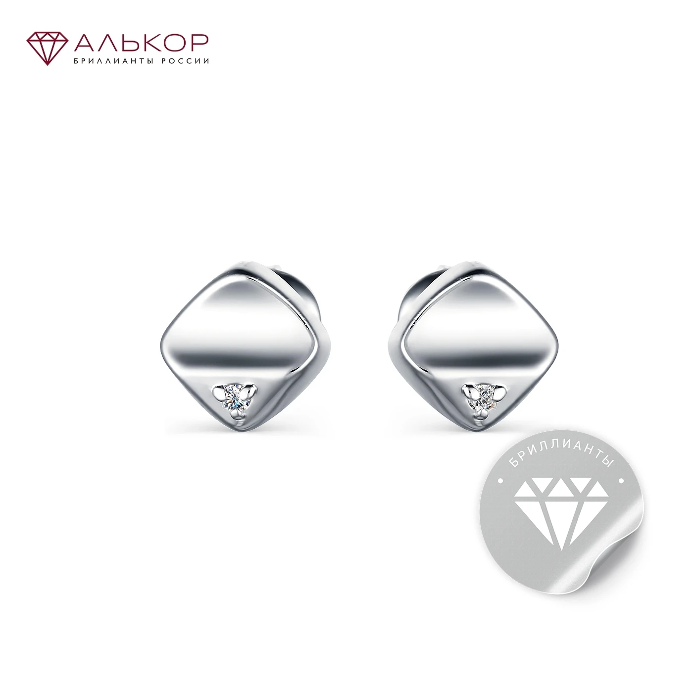 Серьги-пусеты из серебра с бриллиантами. Вставка: 2 Бриллианта Круг 17 120-200 2/2А, карат. вес: 0,013. Высота изделия: 7,4 мм. Ширина изделия: 7,5 мм