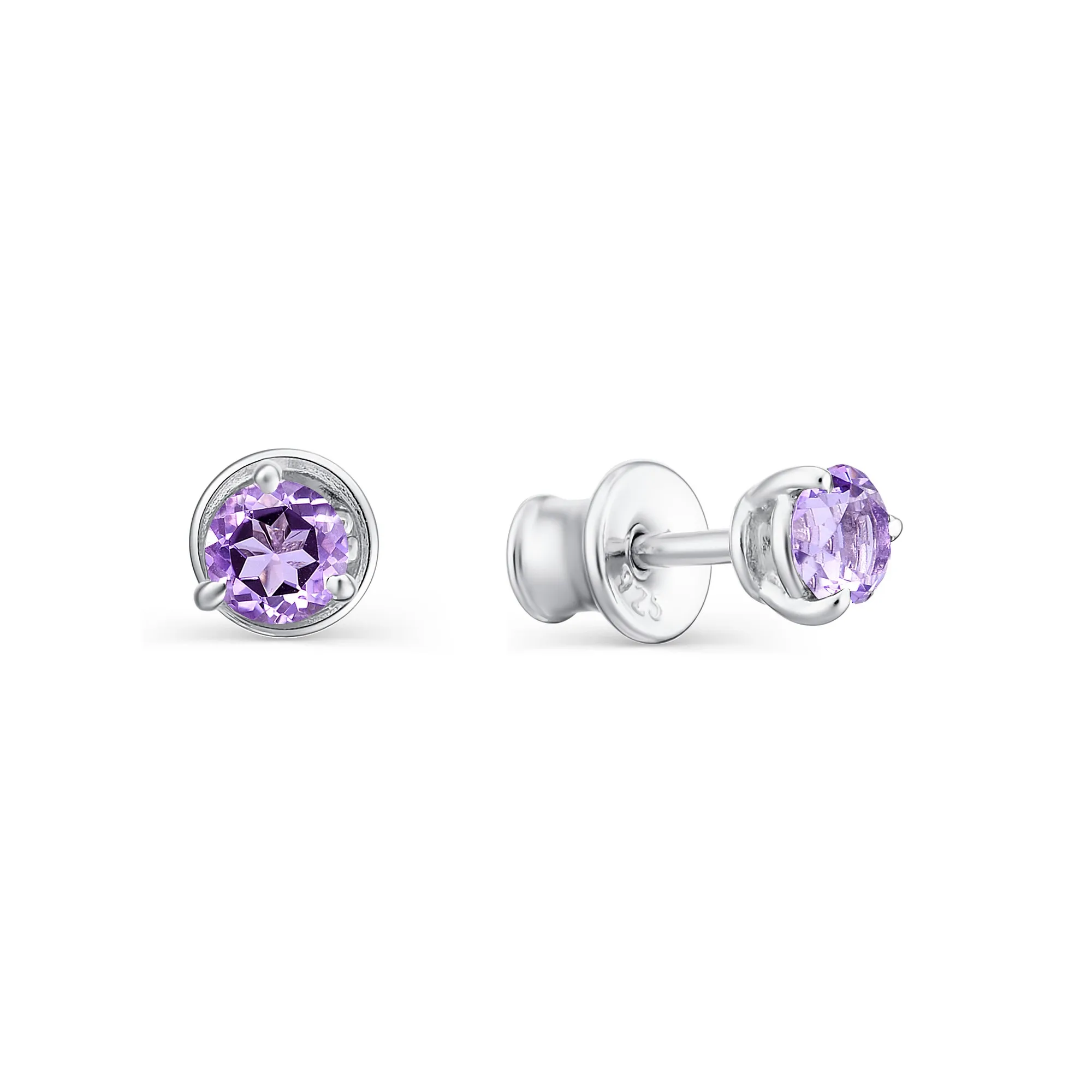 Серьги-пусеты из серебра с полудрагоценными вставками (аметист). Высота изделия: 4,6 мм. Ширина изделия: 4,6 мм