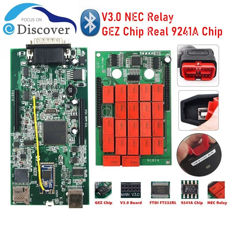 TCS PRO multidiag pro 2016.R1 V3.0 NEC Реле GEZ чип obd2 Диагностический Инструмент TCS PRO двойная печатная плата с реальным 9241A чип Bluetooth Автомобильный сканер
