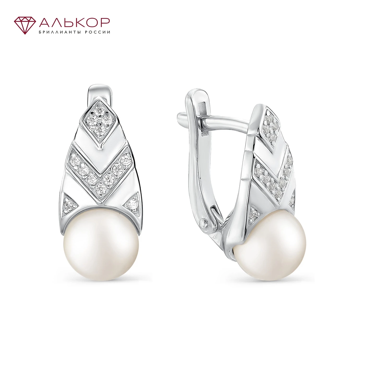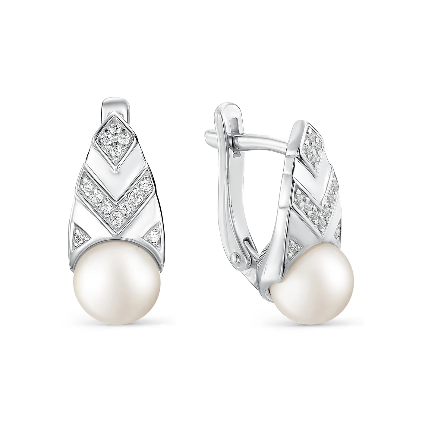Серьги на английском замке из серебра с жемчугом и с фианитовой обсыпкой. Серьги на английском замке из серебра с натуральной жемчужиной и с фианитовой обсыпкой придётся по вкусу любительницам классики и элегантности.