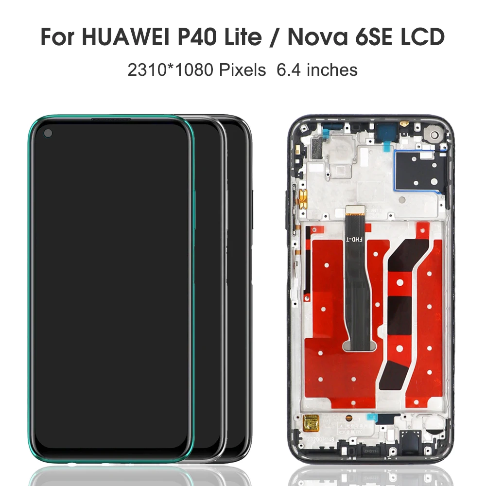 Экран с рамкой для Huawei P40 Lite, P40Lite, 6,4 дюйма, ЖК-дисплей, сенсорный экран, дигитайзер для Huawei Nova6se, Nova6 SE, ЖК-дисплей