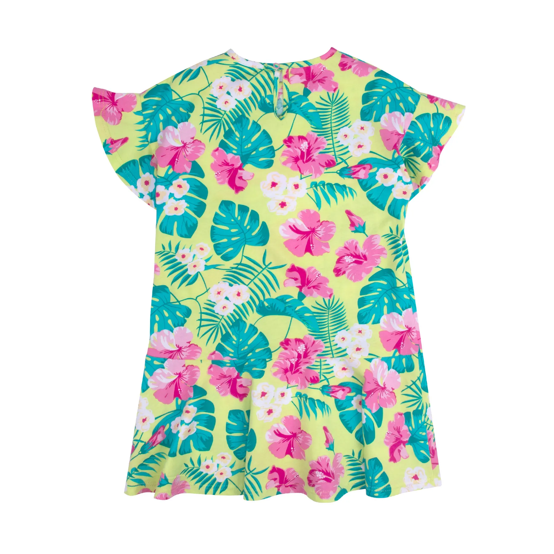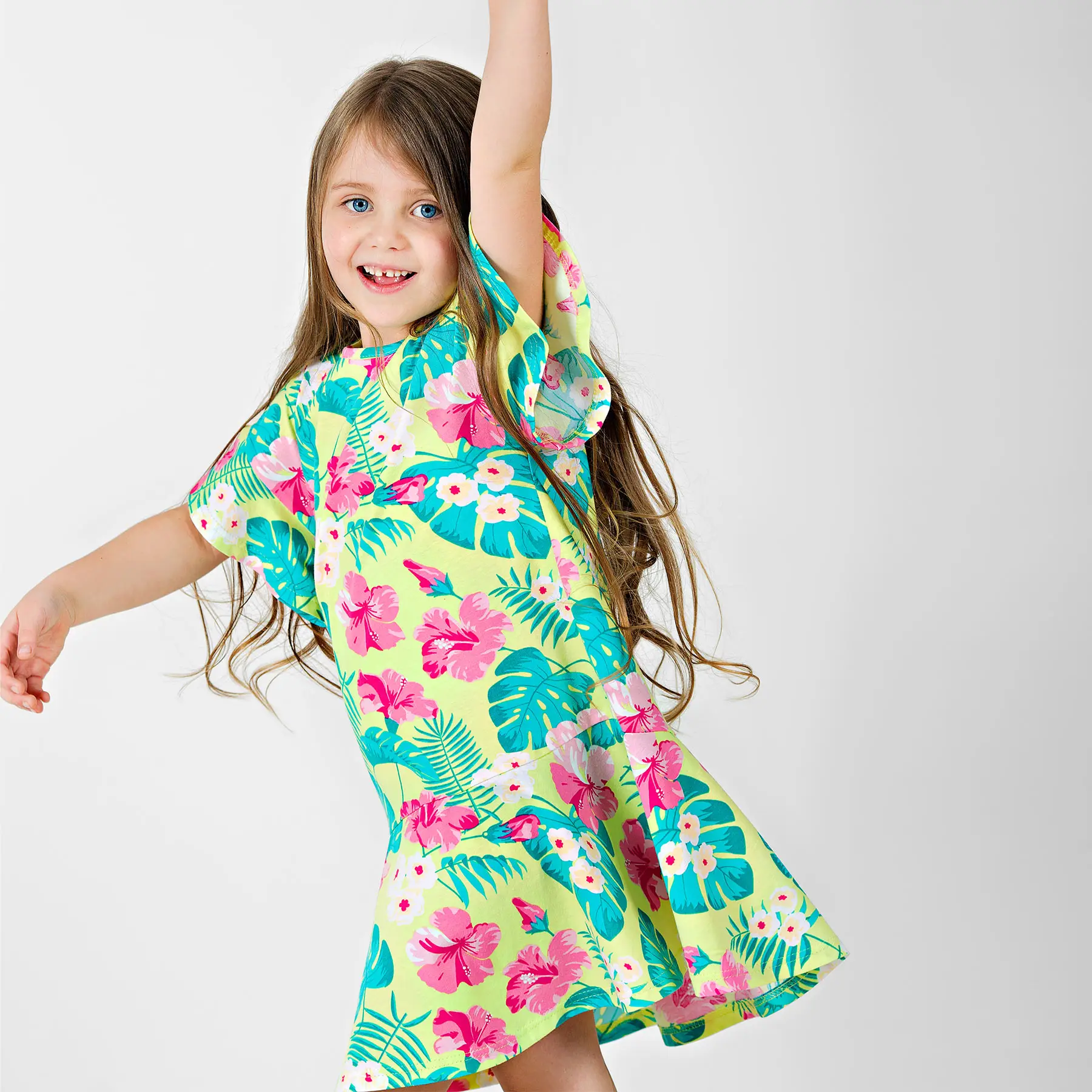 Платье Bossa Nova выполнено из супрема. Детали: воланы на рукавах и по низу изделия, застежка на спине на кнопку.