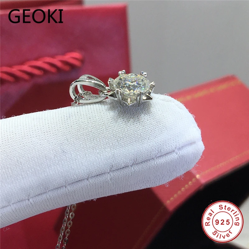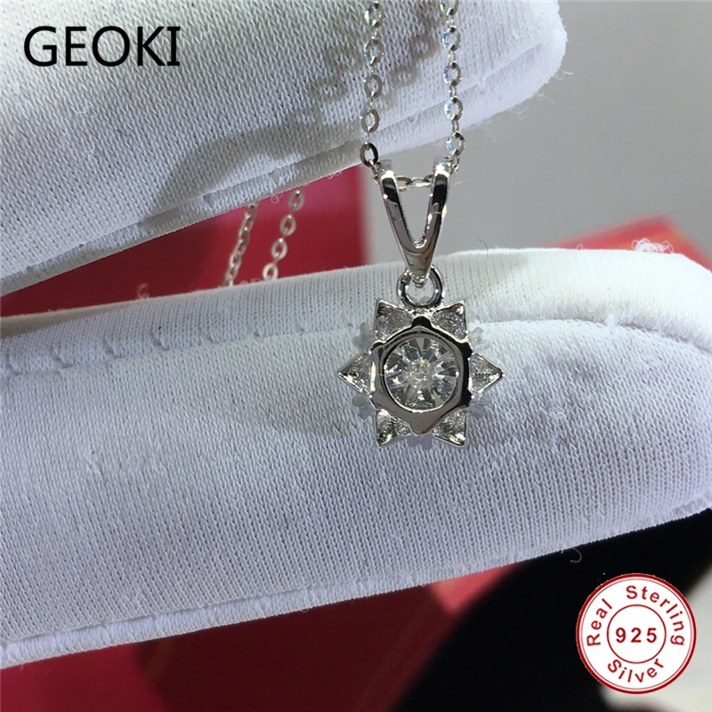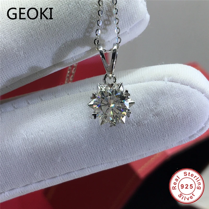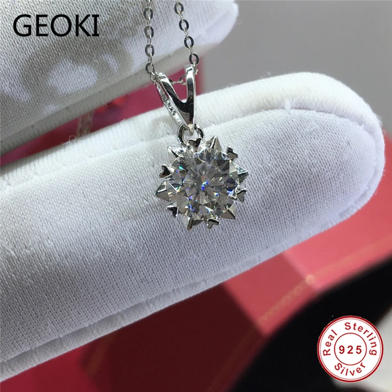 Geoki 925 стерлингового серебра прошел Diamond тесты 1 Ct идеальный крой D Цвет VVS1 Муассанит природные ожерелья cо снежинками Роскошные цепи