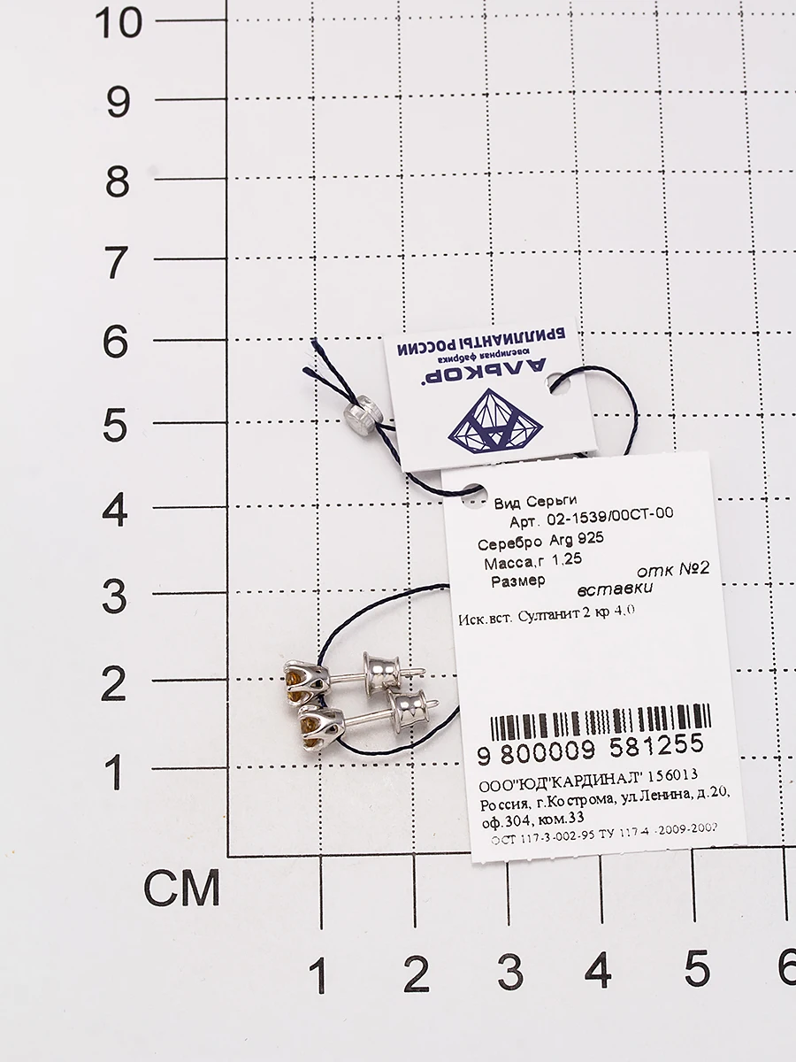 Серьги из серебра 925 с покрытием из родия, вставка: наноситал. Бес...