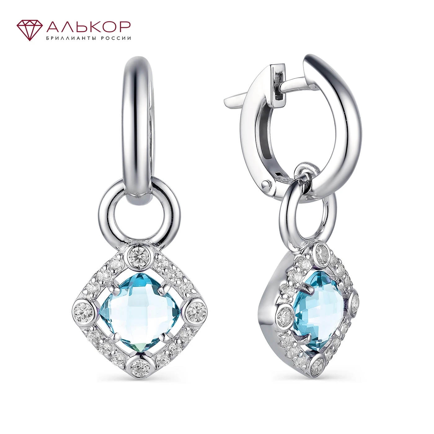 Серьги на английском замке из серебра с полудрагоценными вставками (топаз sky blue) и с фианитовой обсыпкой. Высота изделия: 28,3 мм. Ширина изделия: 11,8 мм