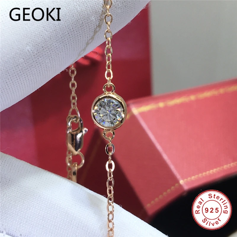 Роскошная Бриллиантовая цепь Geoki с превосходной огранкой, цвет под серебро, розовое золото, 0,5 карат, D, VVS1, браслет с муассанитом
