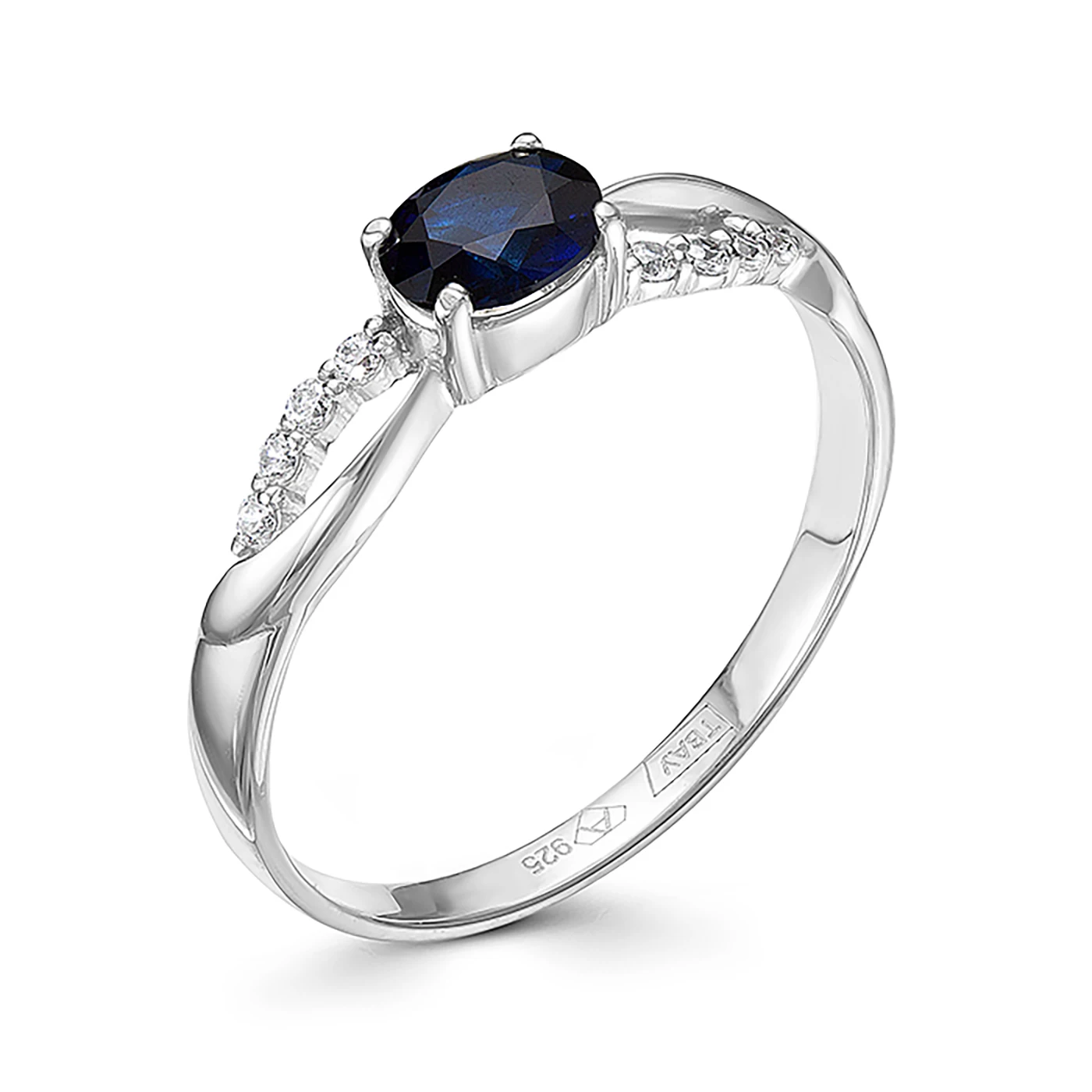 Кольцо из серебра с фианитовой обсыпкой. Вставка: гидротермальный сапфир