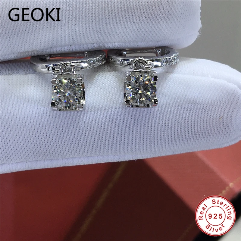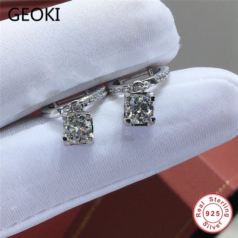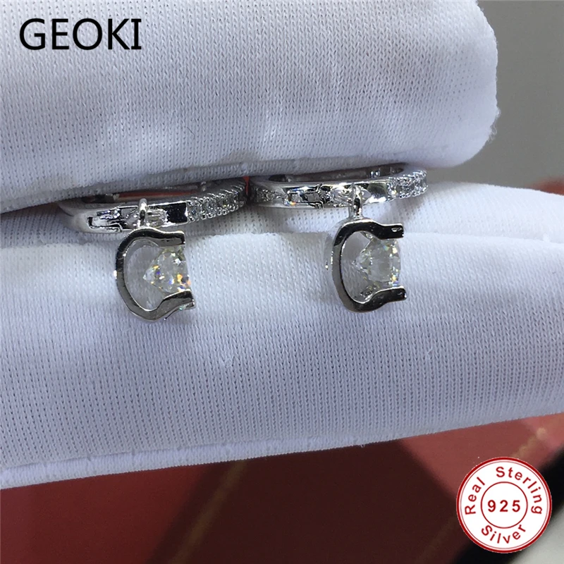Geoki 925 пробы серебро что обошли справа снизу алмаз Тесты всего 1-2 Ct идеальный крой D Цвет VVS1 Муассанит висячие серьги Роскошные ювелирные изделия