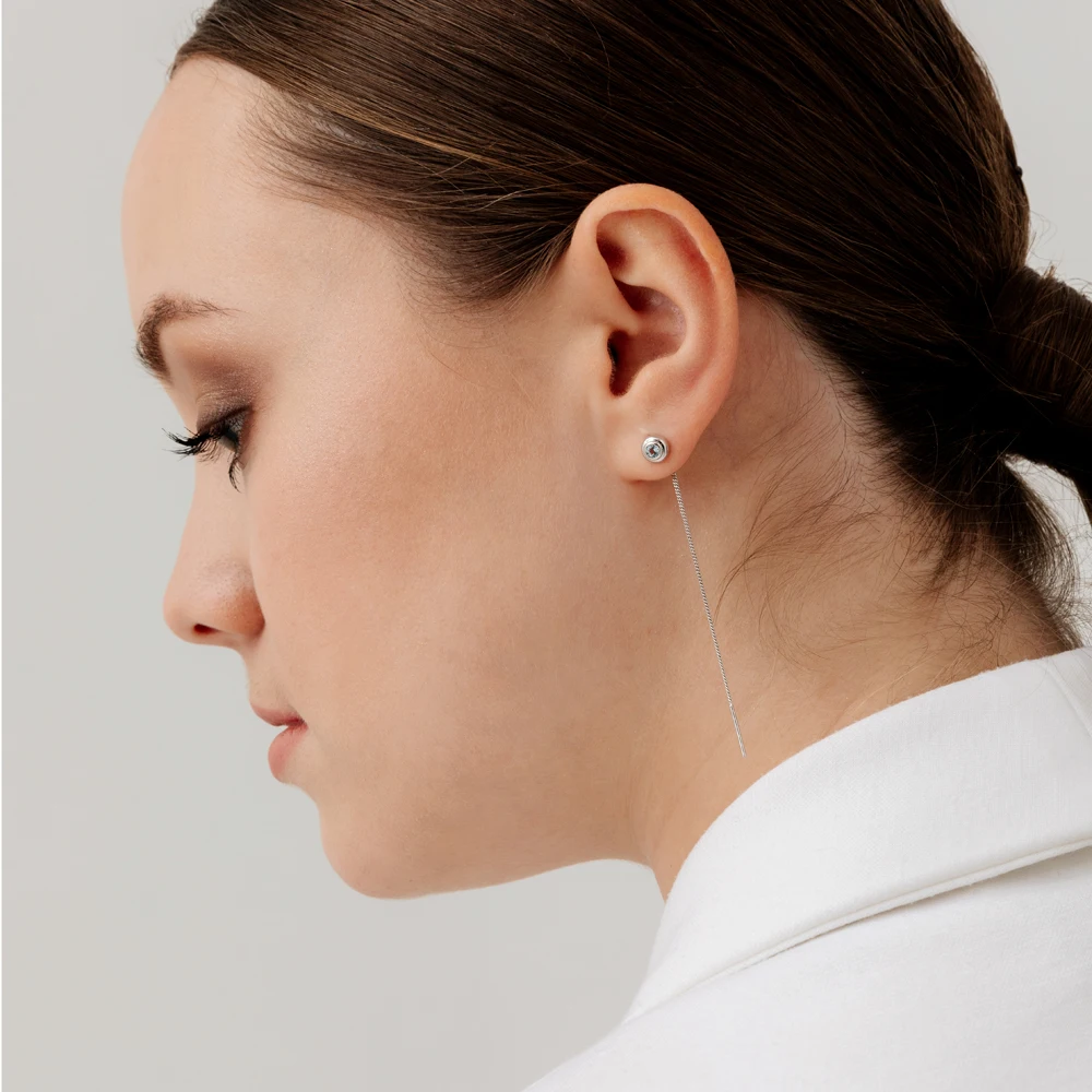 Серьги-продёвки из серебра с полудрагоценными вставками (топаз sky blue). Высота изделия: 71,8 мм. Ширина изделия: 5,5 мм