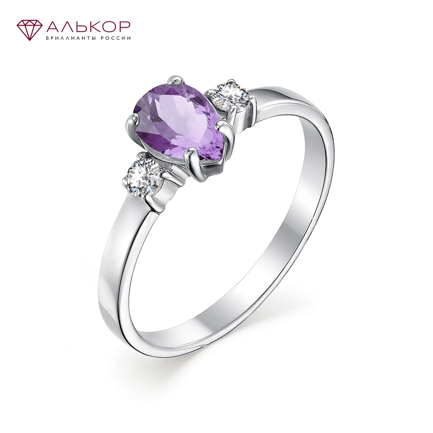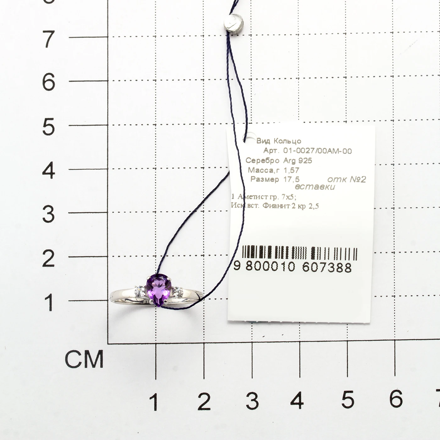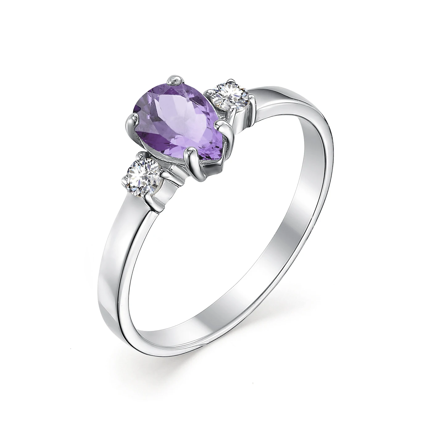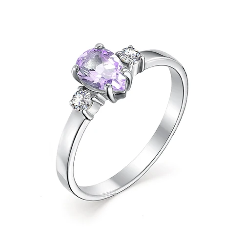 Кольцо тренд 2021 из серебра 925 с покрытием из родия, вставка: аметист. Бесплатная доставка с ювелирной фабрики в России