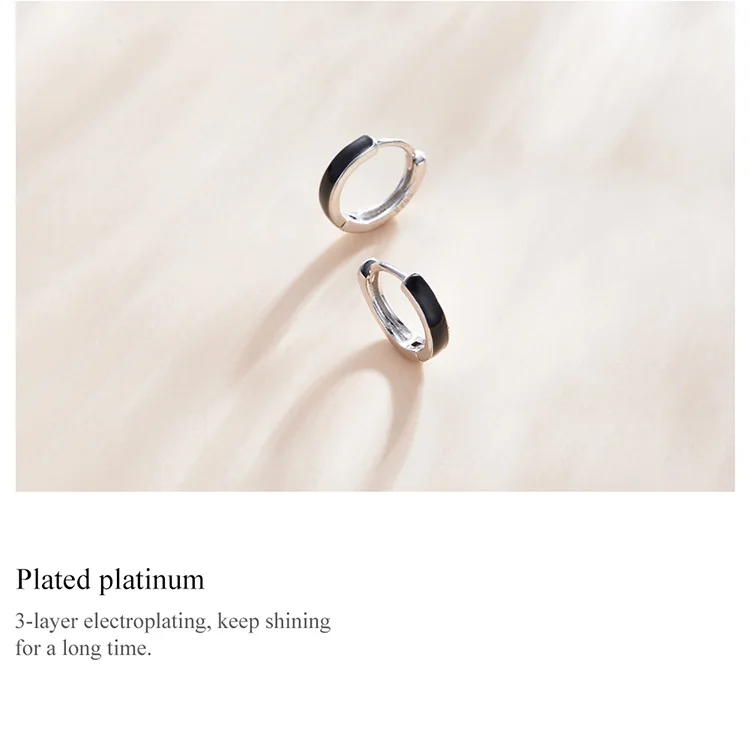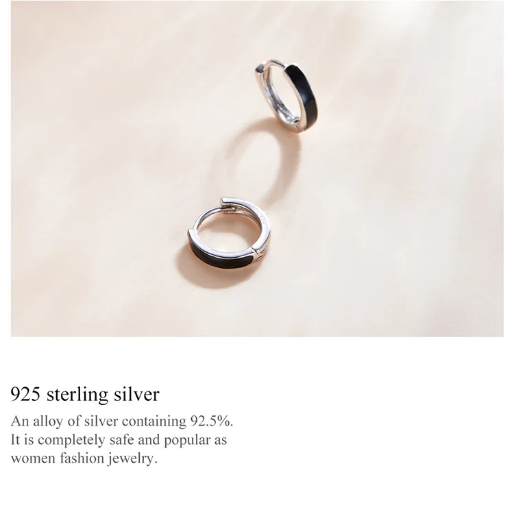 Женские серьги-кольца bamoer из серебра 100% пробы с эмалью, 1 пара, черные серьги-кольца из стерлингового серебра 925 пробы, вечерние серьги SCE1047