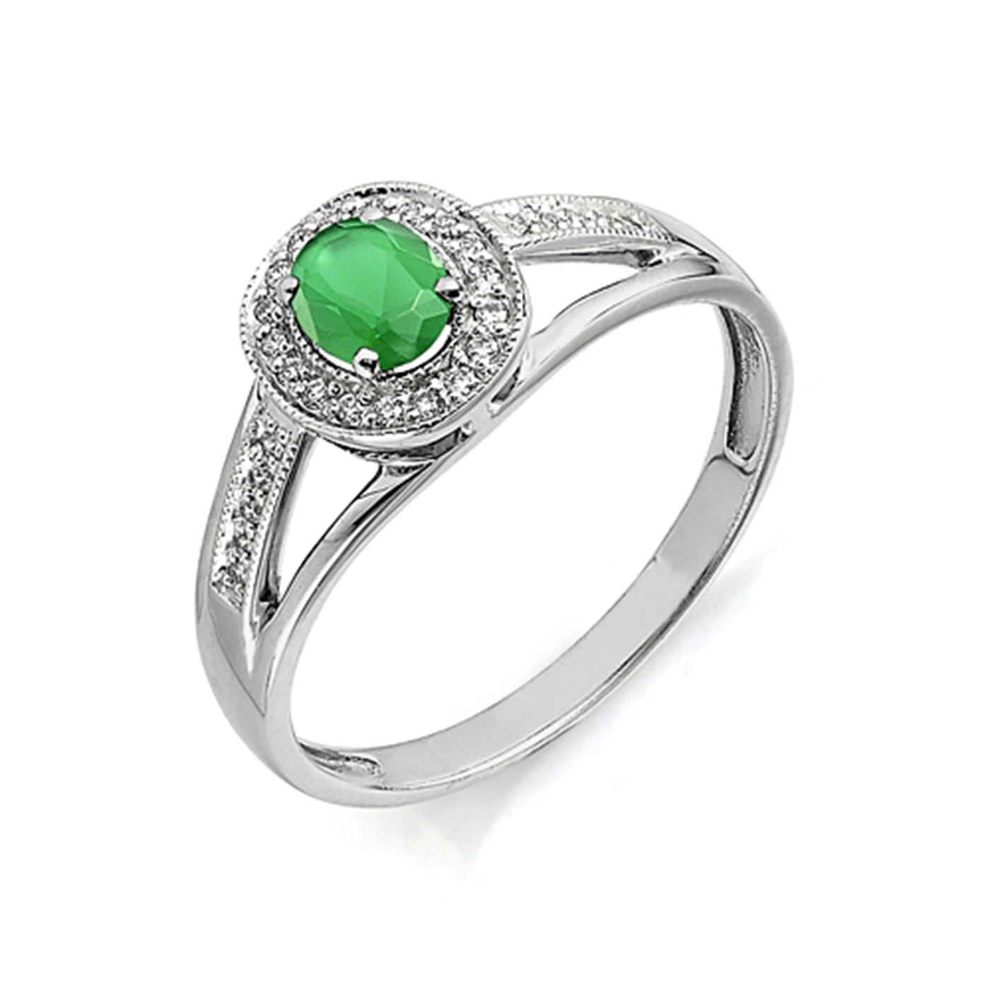 Кольцо из серебра с полудрагоценными вставками (зеленый агат) и с фианитовой обсыпкой