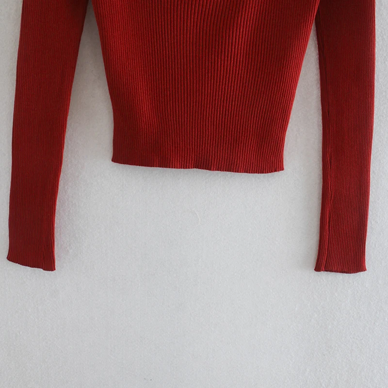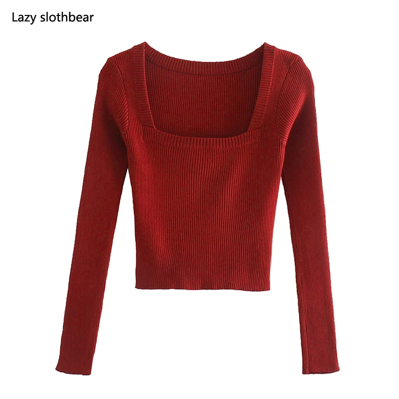 Сезон весна-осень; Женские открытые туфли красного цвета, свитер с длинным рукавом с квадратным вырезом свитер Тонкий Повседневный пуловер женские Трикотаж Топ